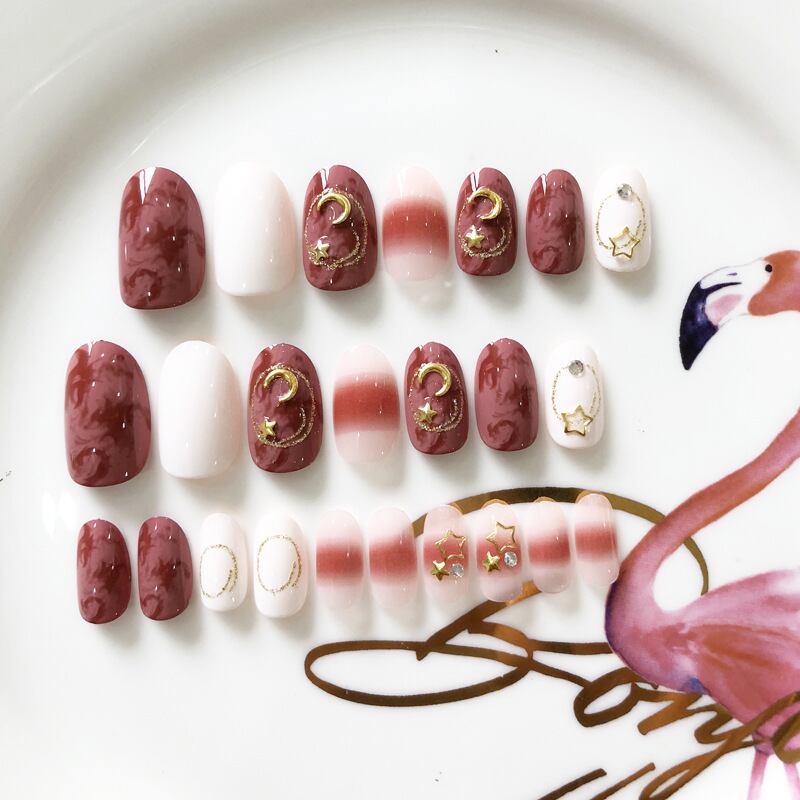 ボルドーマーブルだけでなく、金のお月様とお星様がアクセントになり素敵です✨