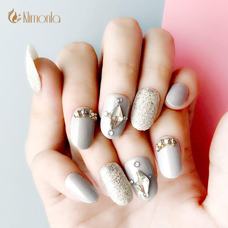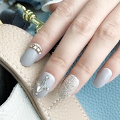 ホワイトグレーに、きらきらしたストーンのついたネイルチップです✨