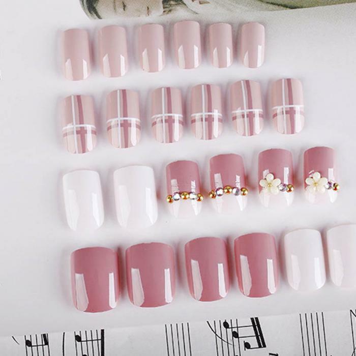 ピンクも淡いベビーピンクのため品があり、お花もラインストーンもついているので、選ぶチップによっては可愛くもシンプルにも可能なデザインです✨