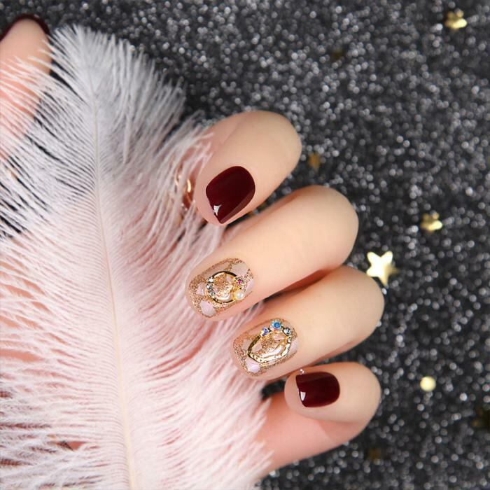 ボルドーにラメとストーンが艶やかなネイルチップです✨