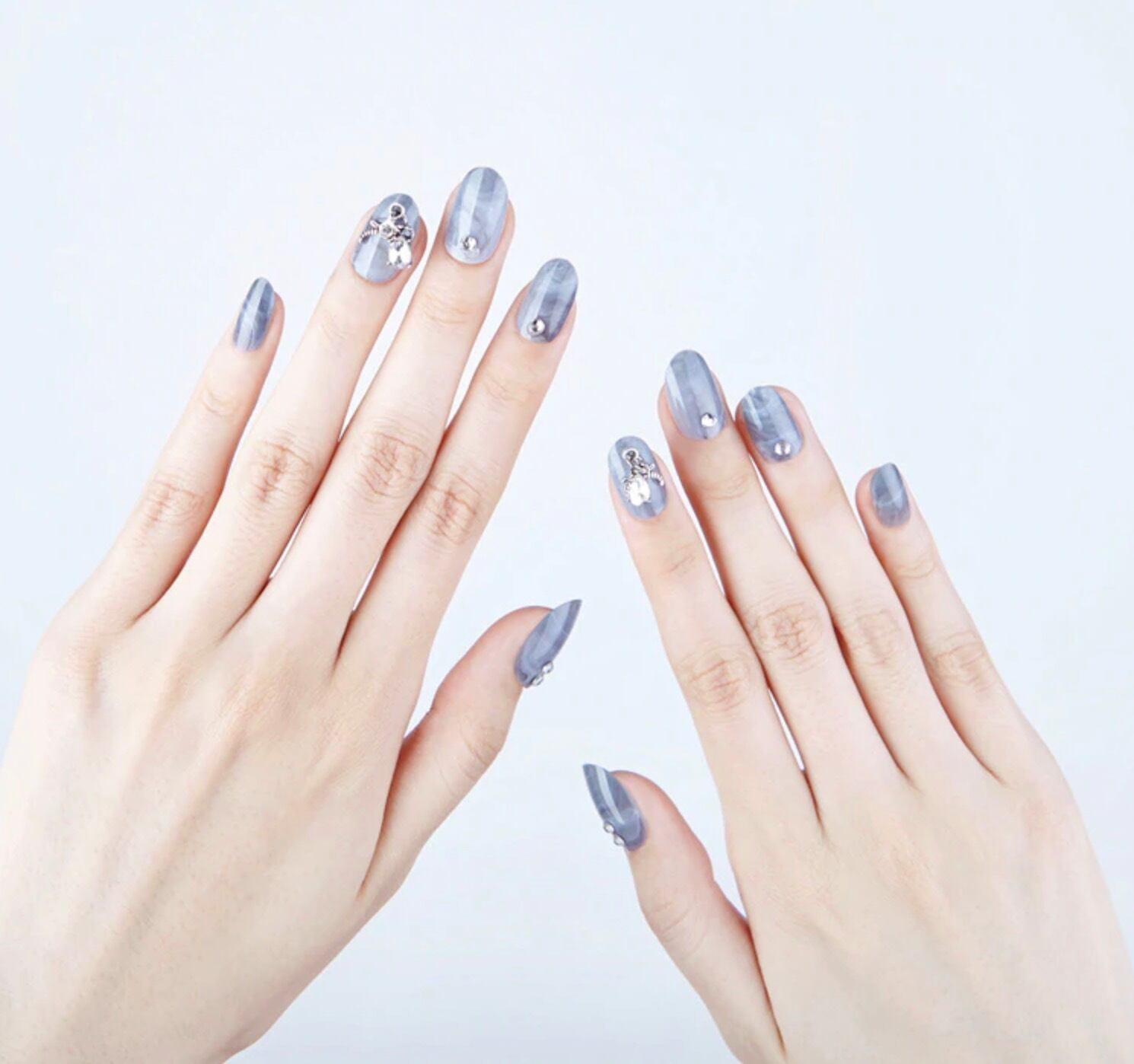 グレーマーブルに揺れるストーンのついたネイルチップ✨