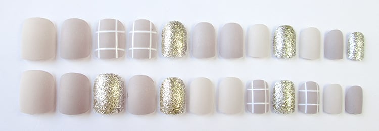 グレージュにチェックとゴールドがアクセントな可愛いネイルチップです✨