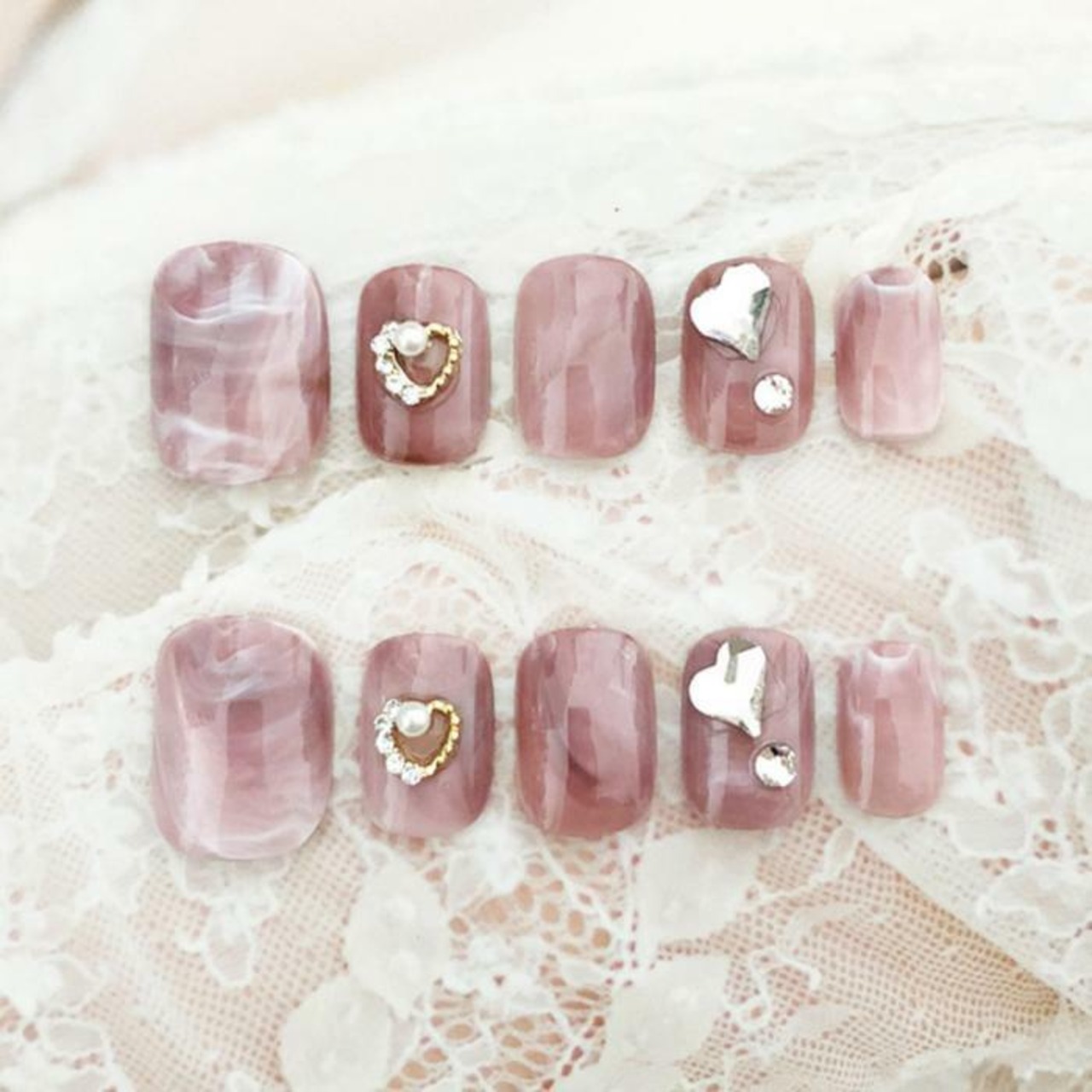 深めのピンクが甘すぎず、ハートのストーンが可愛いです!