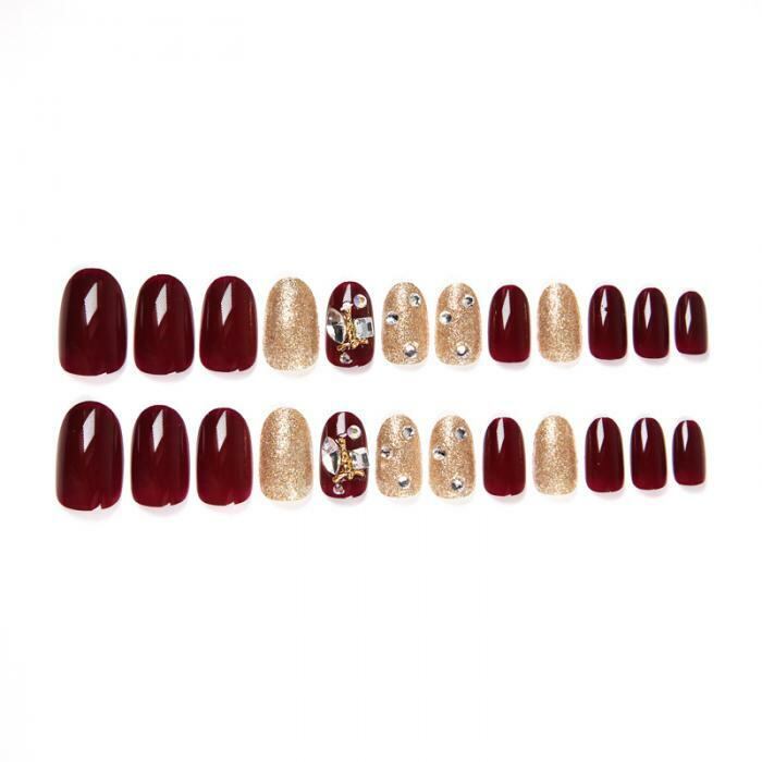 ボルドーにゴールドとキラキラストーンが華やかな大人なネイルチップです✨