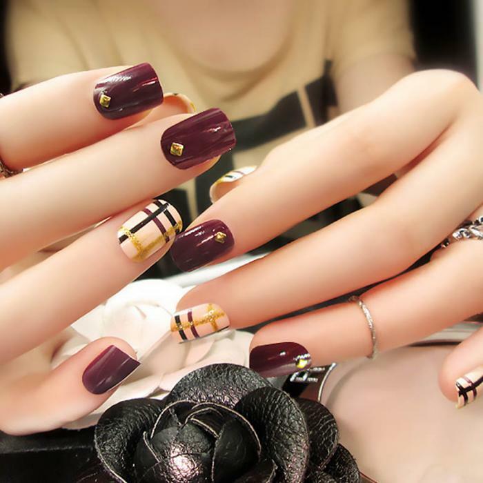 ボルドーにチェックが大人かわいいネイルチップです✨