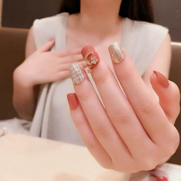 オレンジにゴールドとお月様が可愛いネイルチップです✨