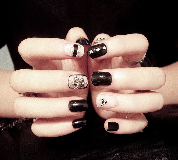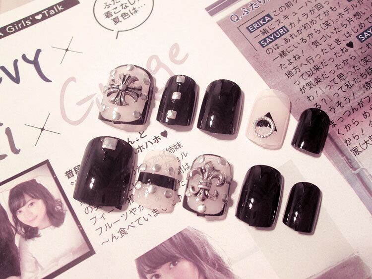 ブラックにクロムハーツ様なのでクールなネイルチップになっています✨