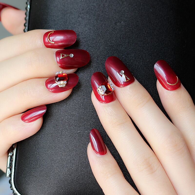 艶やかな真紅に赤いストーンが女性らしいネイルチップになっています✨
