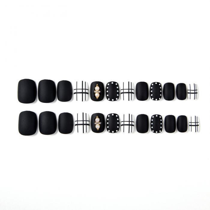 160白黒にチェック、パールがアクセントのネイルチップ(169