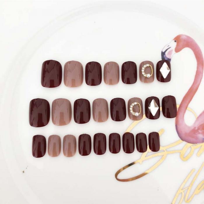 ボルドーにベージュがシックなネイルチップです✨