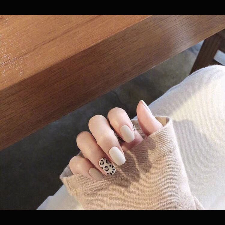 ベージュと白のヒョウ柄ネイルチップです✨