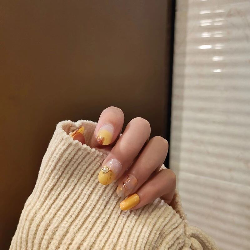 明るめイエローにマーブル、ゴールドのアクセントが可愛いです✨