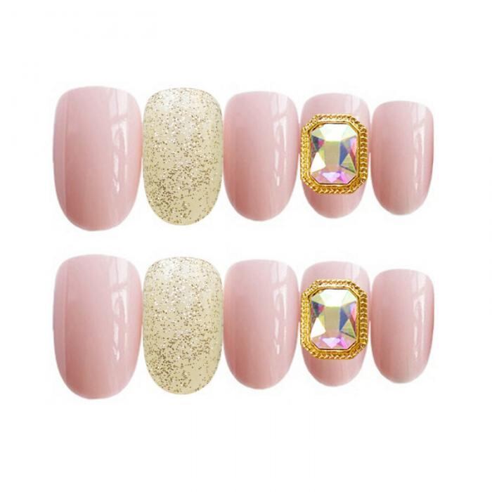 ベビーピンクにシャンパンゴールドが素敵なネイルチップです✨