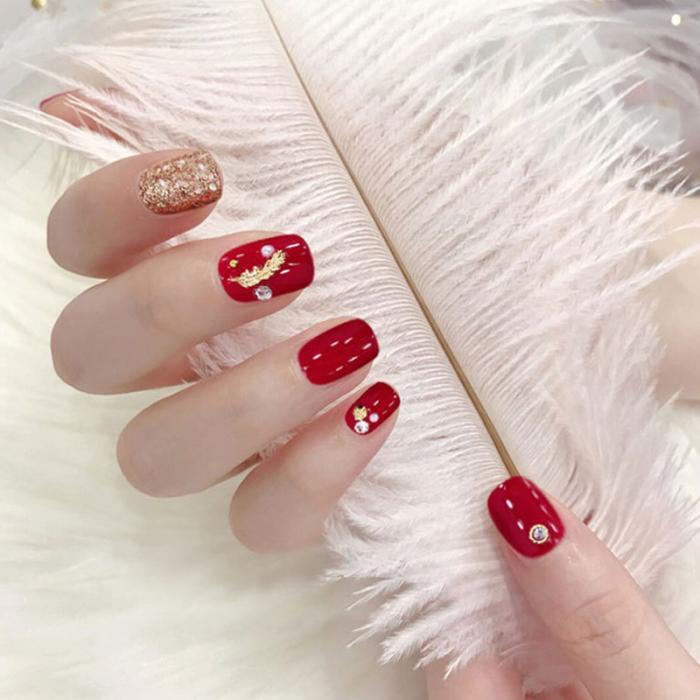 赤にゴールドが華やかなネイルチップ✨