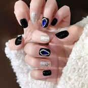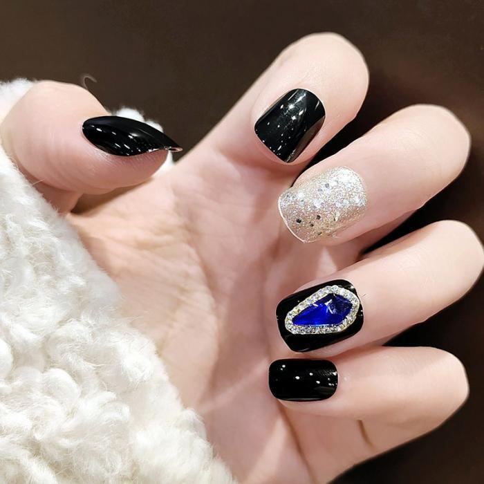ブラックに大きめブルーストーンが綺麗なネイルチップ✨