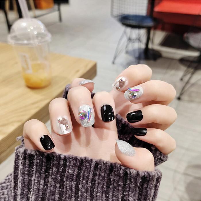 黒にグレーがシックなネイルチップです✨