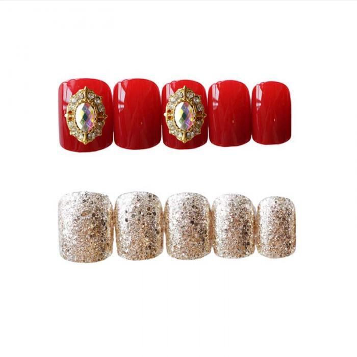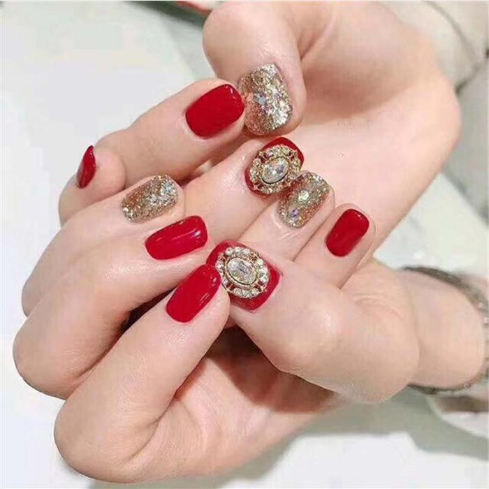 赤にゴールドとストーンが素敵なネイルチップです✨