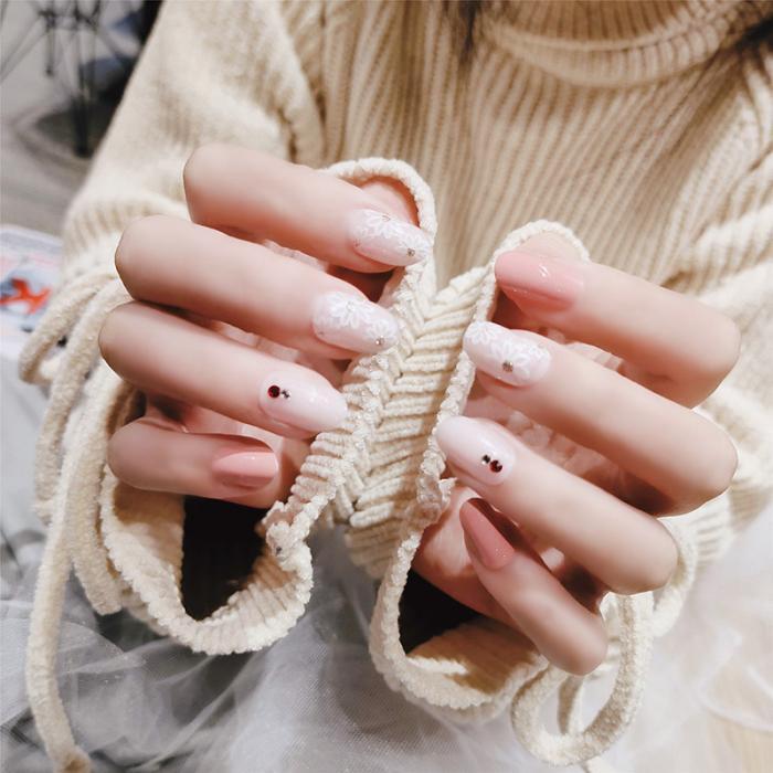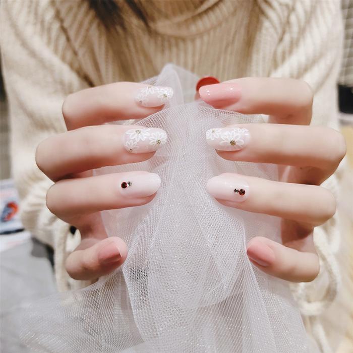 265白のフラワーとストーンが可憐なネイルチップ(265)